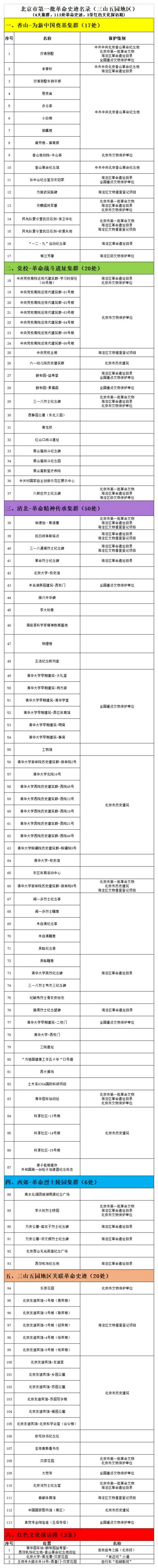 其中,香山-为新中国奠基集群内含双清别墅、来青轩、双清别墅东侧平房、思亲舍、多云亭、小白楼、丽瞩楼等17处革命史迹点位;党校-革命战斗遗址集群包含中央党校南院近现代建筑群学习时报社(90号楼)、中央党校南院近现代建筑群81号楼至86号楼、中央党校主楼、六一幼儿院历史建筑群、颐和园益寿堂等20处革命史迹点位;清北-革命精神传承集群包括埃德加·斯诺墓、抗日战争联络点、三一八遇难烈士纪念碑等50处点位;西郊-革命烈士陵园集群有南水北调团城湖明渠纪念广场、李大钊烈士陵园等6处点位。