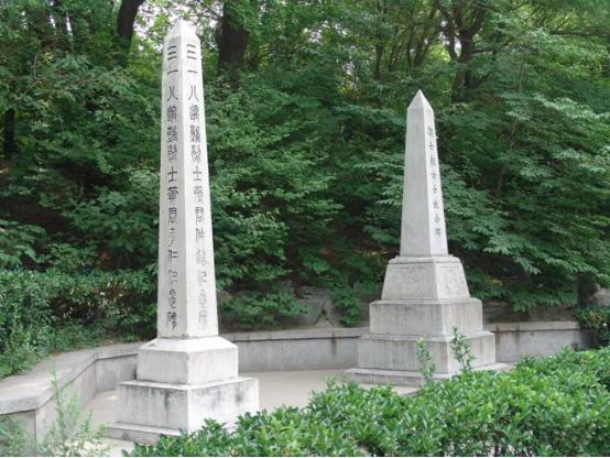 ▲三一八殉难烈士范士融、刘和珍、杨德群纪念碑