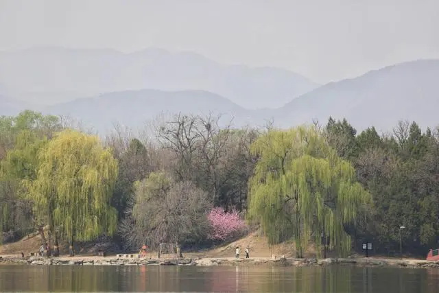 圆明园福海边杨柳青青,桃花次第开放。新京报记者 浦峰 摄