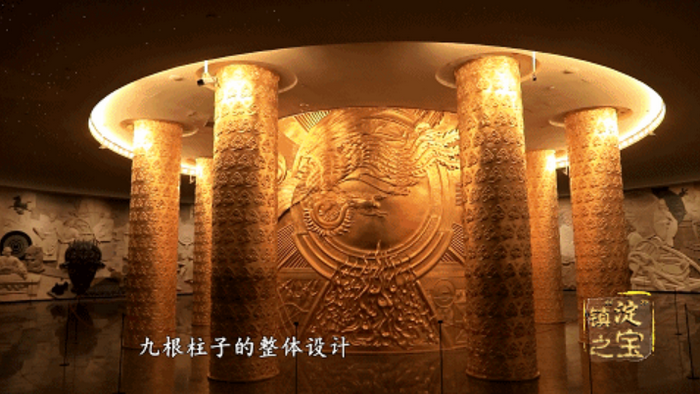 走到中华世纪坛艺术馆内的世纪大厅,首先映入眼帘的是九根,锻铜贴金顶天立地的立柱,上面的龙凤栩栩如生。