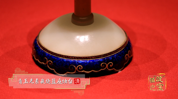 在“春节”篇章,还可以看到这里的“镇馆之宝”,它就是一盏皇帝每年都会用到,一年却只用一次的青玉光素嵌烧蓝座烛台。