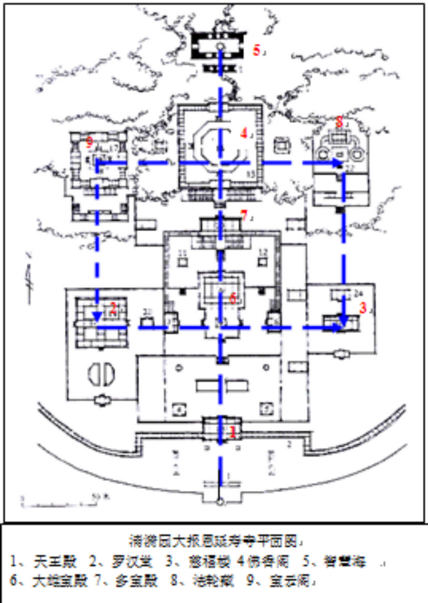 大报恩延寿寺的各寺庙建筑根据奉供佛像的不同,以及佛像在佛教修行中取得的地位和作用而体现出不同的层次。