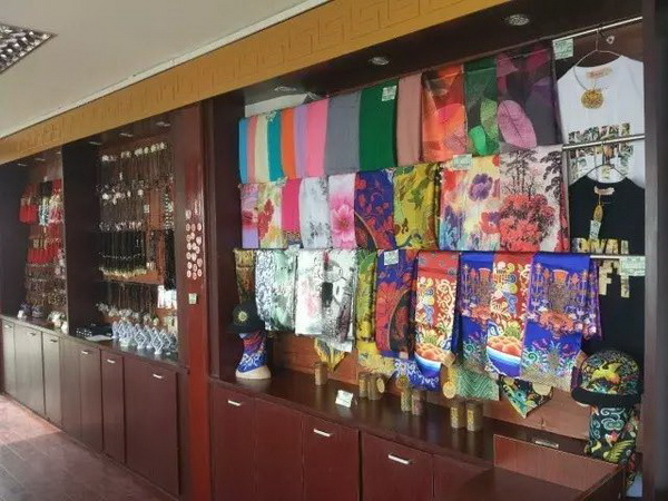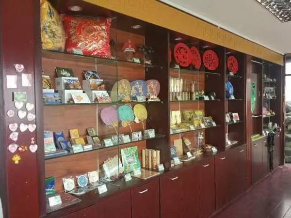 特点:面积大、有特色、产品全。分为产品展示区、实物体验区及自助购买区,有270余种、400余件特色产品。书画拓片类、文化书籍类、茶饮酒品类、皇家器物类、如三清茶、雕漆等传统工艺品。装饰服饰类,如红叶手包、红叶丝巾、胸针、挂饰、书签、手机壳、杯垫、黄马褂等。国庆假期,红叶书签、红叶冰箱贴最受游客热捧。