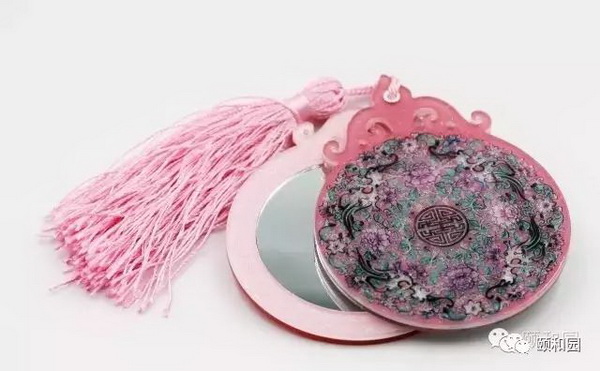 缠枝莲花复古精美化妆镜。粉淡文雅,令人一见倾心。