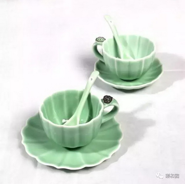 夏日的荷叶,圆润中凹,恰如杯状,被荷叶上绒毛缠住的晨露,像杯口被热水熏腾出的水珠。于是,便有了这款盛放在荷叶上的茶杯,手握处,刚好弯曲成如意的形状。