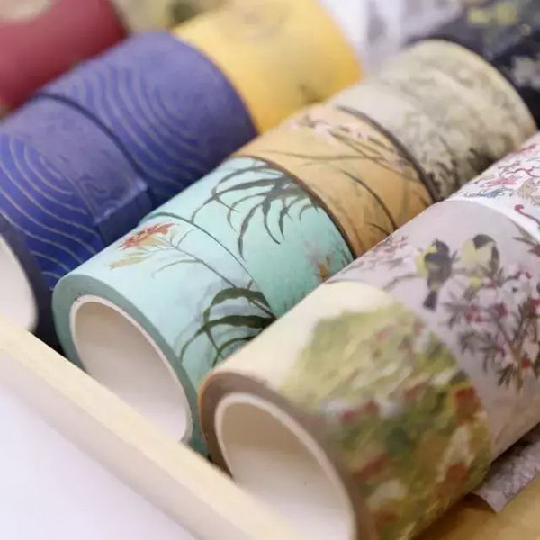颐和园古香古色和纸胶带印刷精美、图案丰富。分笔墨四季、大吉大利、行云流水等系列。图案内容包括明仇英《桃园仙境图》、清徐扬《玉带桥诗意图》、关槐《上塞锦林图》、清余穉《花鸟图册》、清“大吉”葫芦式挂屏等内容。