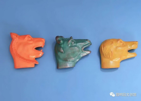 每款冰箱贴都以圆明园海晏堂十二生肖兽首铜像为原型,材质正面为树脂,背面为圆磁,工艺采用3D建模、手工塑型精雕,分层微刻着色,成型后再做精抛打磨、手工扫金着色处理。