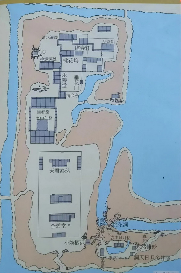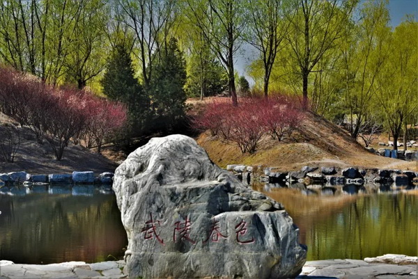 圆明园里有座桃花源,它完整再现了陶渊明《桃花源记》整体意境。历史上,这里四面环山、溪流绕岛,游人可乘舟沿清溪穿过桃源洞进入桃柳村,平野开阔处山桃万株,每到春天“春深片片贴波红”,或朝曦夕阳、或酣雪烘霞,光炫绮树而莫可名状。