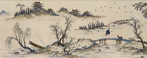 (明)仇英《仿赵伯驹桃源图》(局部)