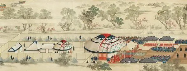 清代宫苑里的蒙古包是当时清宫与蒙古诸部宗教、政治和文化交流的载体,在圆明三园中,山高水长与含经堂两地常搭建蒙古包,主要供设宴和接见外藩使用。