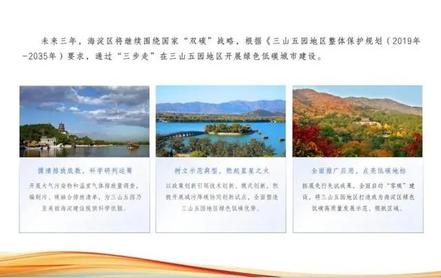 适逢“六五环境日”主题宣传周,海淀区发布三山五园地区未来绿色低碳建设任务书,将通过三年“三步走”,在三山五园地区开展绿色低碳城市建设,将之打造成海淀区绿色低碳高质量发展示范、领航区域。