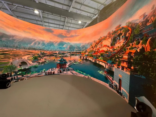 在秋界万寿山颐和园,通过弧幕影片全角度展示古画中的颐和园,画面以清末颐和园原图为基础动态影像,展示全景全角度的4D影院沉浸式体验效果,复原出颐和园线下游园无法体验的视角,展现真山真水,高山大湖之中的皇家园林风范。观众可以根据展墙上的二维码进入颐和园图景专题页面,下载颐和园景致图片到手机上进行欣赏留存及二次传播。