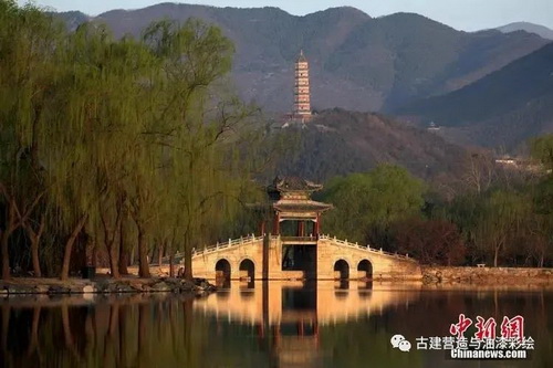 玉泉山,金、元以来的“燕京八景”之一,名曰“玉泉垂虹”,清乾隆时改称“泉趵突”,并赐为“天下第一泉”。玉泉山最早的建筑为金章宗避暑之所“芙蓉殿”,称玉泉行宫。玉峰塔位于玉泉山主峰,为八角七级仿木构楼阁式石塔,高47.7米,"玉峰塔影"为十六景之一;