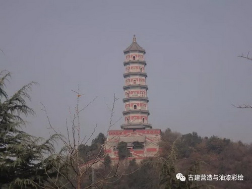 玉峰塔,位于玉泉山主峰,为八角七级仿木构楼阁式石塔,高47.7米,以“玉峰塔影”为名,是十六景之一。