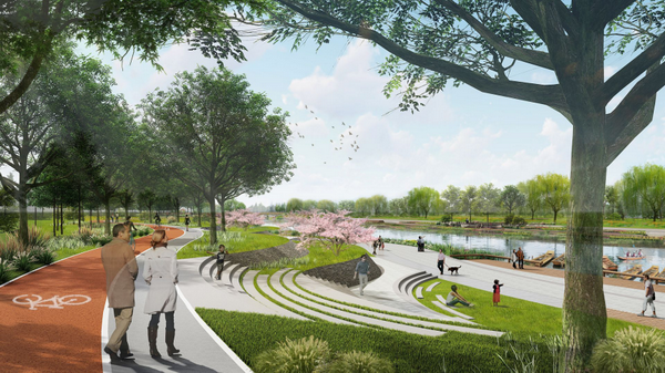 清河之洲西起树村路,东至信息路,全长930米,南起清河南岸五环路,北至规划清河北侧路,纵深260米,总治理面积约24.3公顷,是清河蓝绿十字廊道骨架打造和上地地区整体面貌的重要节点。目前项目已经开工,将通过修复滨水生态空间、建设滨水生态公园,新增慢行系统2.4公里,缝合蓝绿空间26公顷,打造自然生态与历史文化相融合、休闲水岸与滨水经济互促进的滨水绿廊,预计2023年6月完工。