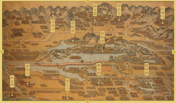 目前还有“三山五园”组成的其它版本,但从这幅图的名称及画面来看,所谓“三山五园”在清代就已经有了明确的含义和指向。
